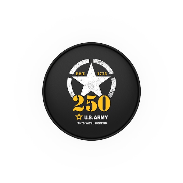 Mark the Army's 250th anniversary with a tribute to America's oldest military branch. This Army 250 bar stool cushion cover is hand-by Holland Bar Stool Co.; using the finest commercial grade vinyl and utilizing a state of the art printing process to give you the most detailed logo possible. This cover slips over your existing cushion, held in place by an elastic band. The vinyl cover will fit 14in diameter x 4in thick seats. This product is Officially Licensed. Make those old stools new again while celebrating our troops with the help of Holland Bar Stool Co.!