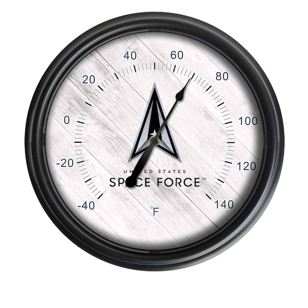 The Holland Bar Stool Co.s indoor/outdoor LED Logo Thermometers are the perfect way to show your support for our troops. These Thermometers are made to handle the outside environment. The casing is made from a UV resistant black ABS plastic and the glass face lens has a rubber gasket to seal the weather from the inner thermometer housing. Four LED lights are controlled by a photo eye, turning on automatically when it is dark to illuminate the thermometer face. LED lights run off 4 D batteries not included. Artwork is digitally printed with UV inks to ensure years of fade free, vibrant colors. Take satisfaction knowing you're buying a thermometer that is proudly brought to you by the Holland Bar Stool Company.