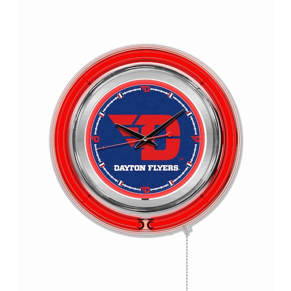 Our double neon Logo Clocks are the perfect way to show your school pride. Featuring a chrome casing and a team color specific neon outer ring that accents the custom printed clock face which is lit up by an brilliant white, inner neon ring. The Neon rings are easily turned on and off with a pull chain on the bottom of the clock, and are powered by a UL Listed power transformer that runs off standard 120V outlet. Accurate quartz movement ensures proper time and is powered by a single, AA battery (not included). Whether purchasing as a gift for a recent grad, sports super fan, or for yourself, you can take satisfaction knowing you're buying a clock that is proudly made by the Holland Bar Stool Company.