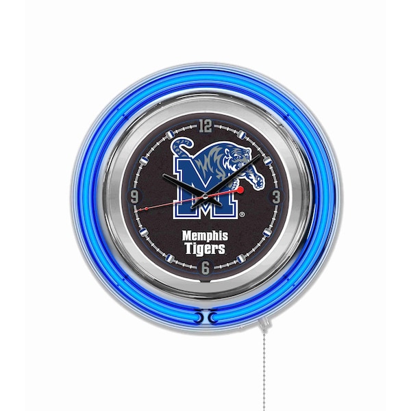 Our double neon Logo Clocks are the perfect way to show your school pride. Featuring a chrome casing and a team color specific neon outer ring that accents the custom printed clock face which is lit up by an brilliant white, inner neon ring. The Neon rings are easily turned on and off with a pull chain on the bottom of the clock, and are powered by a UL Listed power transformer that runs off standard 120V outlet. Accurate quartz movement ensures proper time and is powered by a single, AA battery (not included). Whether purchasing as a gift for a recent grad, sports super fan, or for yourself, you can take satisfaction knowing you're buying a clock that is proudly made by the Holland Bar Stool Company.