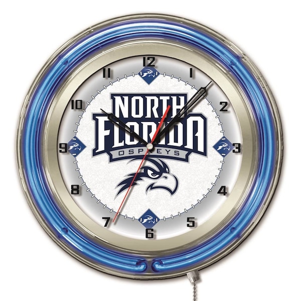 Our double neon Logo Clocks are the perfect way to show your school pride. Featuring a chrome casing and a team color specific neon outer ring that accents the custom printed clock face which is lit up by an brilliant white, inner neon ring. The Neon rings are easily turned on and off with a pull chain on the bottom of the clock, and are powered by a UL Listed power transformer that runs off standard 120V outlet. Accurate quartz movement ensures proper time and is powered by a single, AA battery (not included). Whether purchasing as a gift for a recent grad, sports super fan, or for yourself, you can take satisfaction knowing you're buying a clock that is proudly made by the Holland Bar Stool Company.