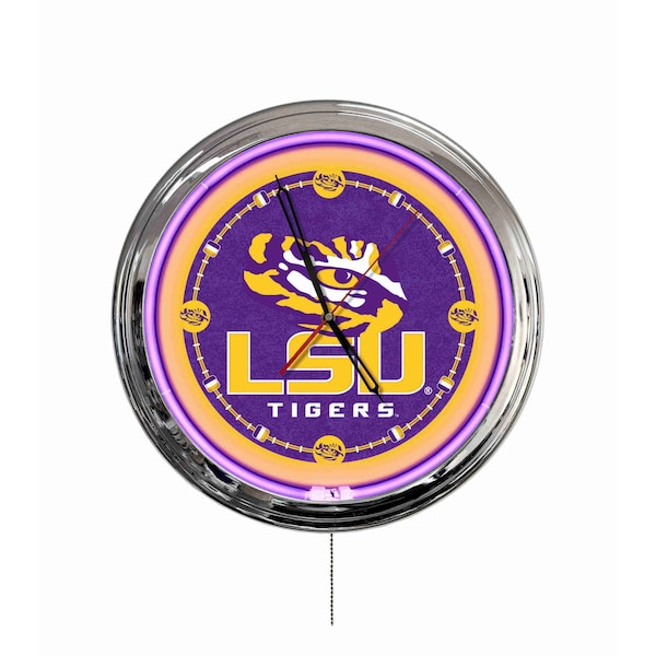 A new, efficient alternative to neon, this 16 multi-color LED clock provides flexibility and style. Logos and brands are illuminated by a variety of eye-catching colors that glow against the slim chrome casing. Featuring 20 static colors, 19 dynamic modes, adjustable speed, and brightness to adapt to changing events and atmospheres. Powered by a UL listed transformer that runs off a standard 120V outlet, with accurate quartz movement powered by a single AA battery battery not included. The wireless remote allows you to easily transition colors, modes, speed, and brightness. Available for all our officially licensed teams and brands. Custom branding also available.