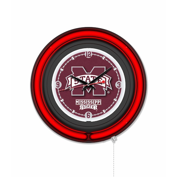 Our double neon Logo Clocks are the perfect way to show your school pride. Featuring a Black casing and a team color specific neon outer ring that accents the custom printed clock face which is lit up by an brilliant white, inner neon ring. The Neon rings are easily turned on and off with a pull chain on the bottom of the clock, and are powered by a UL Listed power transformer that runs off standard 120V outlet. Accurate quartz movement ensures proper time and is powered by a single, AA battery not included. Whether purchasing as a gift for a recent grad, sports super fan, or for yourself, you can take satisfaction knowing you're buying a clock that is proudly made by the Holland Bar Stool Company in Holland, MI