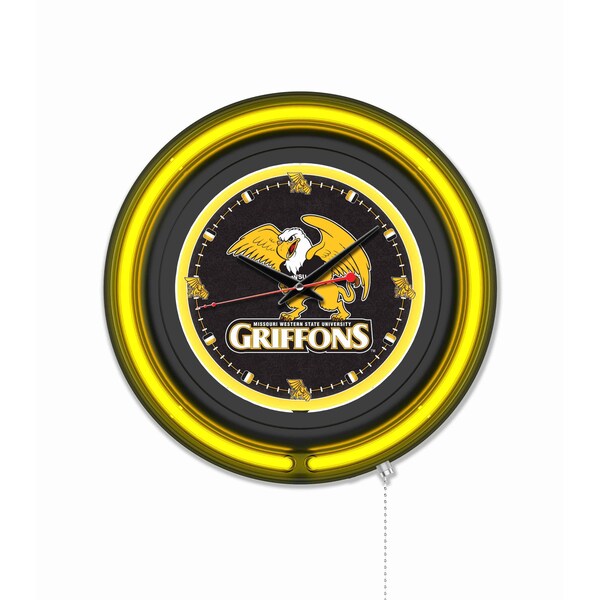 Our double neon Logo Clocks are the perfect way to show your school pride. Featuring a Black casing and a team color specific neon outer ring that accents the custom printed clock face which is lit up by an brilliant white, inner neon ring. The Neon rings are easily turned on and off with a pull chain on the bottom of the clock, and are powered by a UL Listed power transformer that runs off standard 120V outlet. Accurate quartz movement ensures proper time and is powered by a single, AA battery not included. Whether purchasing as a gift for a recent grad, sports super fan, or for yourself, you can take satisfaction knowing you're buying a clock that is proudly made by the Holland Bar Stool Company in Holland, MI