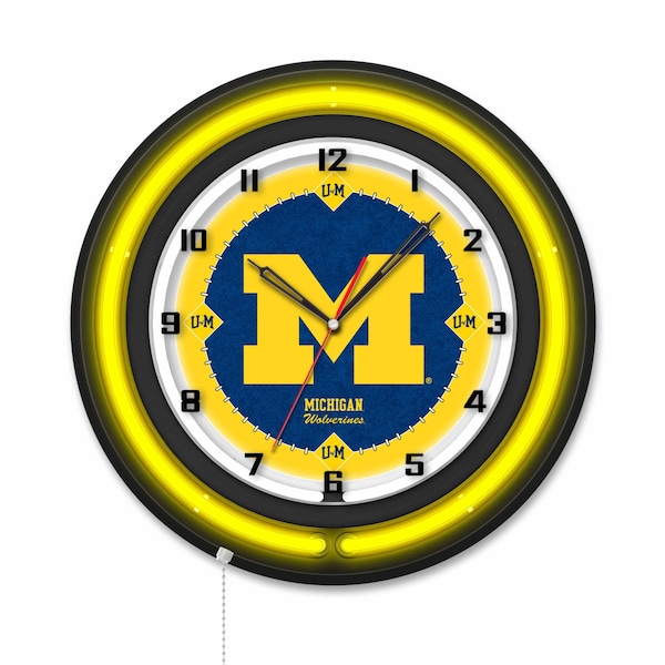 University of Michigan 19 Double Neon Wall Clock