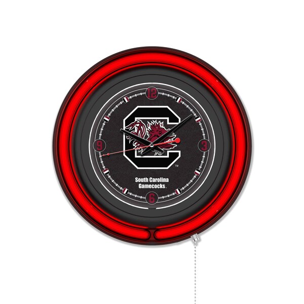 Our double neon Logo Clocks are the perfect way to show your school pride. Featuring a Black casing and a team color specific neon outer ring that accents the custom printed clock face which is lit up by an brilliant white, inner neon ring. The Neon rings are easily turned on and off with a pull chain on the bottom of the clock, and are powered by a UL Listed power transformer that runs off standard 120V outlet. Accurate quartz movement ensures proper time and is powered by a single, AA battery not included. Whether purchasing as a gift for a recent grad, sports super fan, or for yourself, you can take satisfaction knowing you're buying a clock that is proudly made by the Holland Bar Stool Company in Holland, MI
