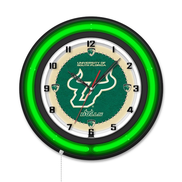 Our double neon Logo Clocks are the perfect way to show your school pride. Featuring a Black casing and a team color specific neon outer ring that accents the custom printed clock face which is lit up by an brilliant white, inner neon ring. The Neon rings are easily turned on and off with a pull chain on the bottom of the clock, and are powered by a UL Listed power transformer that runs off standard 120V outlet. Accurate quartz movement ensures proper time and is powered by a single, AA battery not included. Whether purchasing as a gift for a recent grad, sports super fan, or for yourself, you can take satisfaction knowing you're buying a clock that is proudly made by the Holland Bar Stool Company in Holland, MI