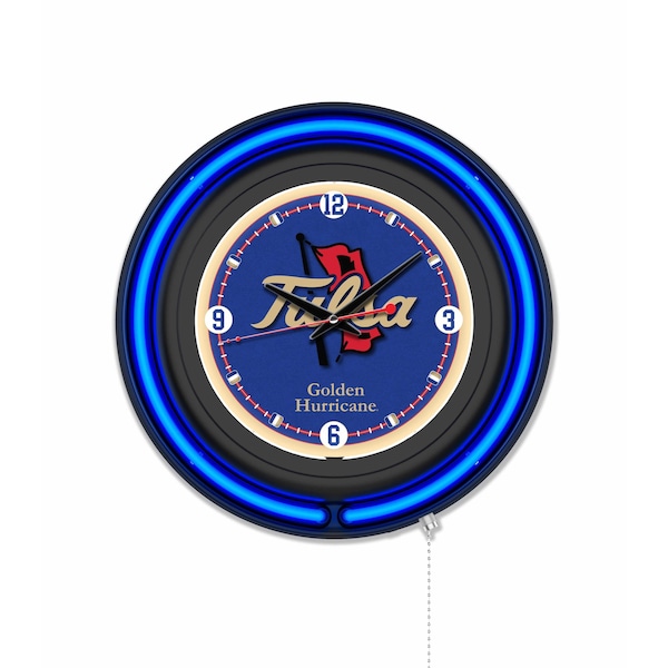 Our double neon Logo Clocks are the perfect way to show your school pride. Featuring a Black casing and a team color specific neon outer ring that accents the custom printed clock face which is lit up by an brilliant white, inner neon ring. The Neon rings are easily turned on and off with a pull chain on the bottom of the clock, and are powered by a UL Listed power transformer that runs off standard 120V outlet. Accurate quartz movement ensures proper time and is powered by a single, AA battery not included. Whether purchasing as a gift for a recent grad, sports super fan, or for yourself, you can take satisfaction knowing you're buying a clock that is proudly made by the Holland Bar Stool Company in Holland, MI