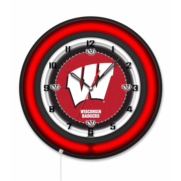 University of Wisconsin W 19 Double Neon Wall Clock