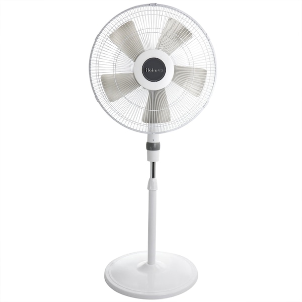 The Holmes Oscillating 16in blade stand fan is made with a motorized oscillation that delivers cooling airflow in large living areas. Tilt adjustable head and height with adjustable pole allows you to fine tune and target the direction of airflow to provide maximum cooling relief. Translucent 5 blade design to deliver powerful airflow with a translucent finish that blends into the home to make blades less visible. Wide angle oscillation delivers cooling in large areas. Easy assembly- no need for tools.