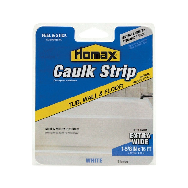 Homax makes it easy to update a bathroom without the cost of a total remodel. Homax caulk strip, floor and tub is a pre-shaped, flexible, peel-and-stick caulk. Molded-in score line assures uniform positioning against the surface for fast, professional results.