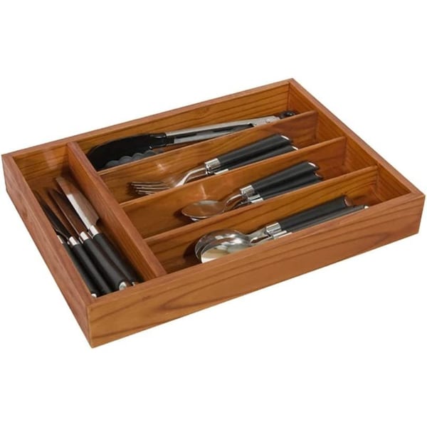 Messy drawers are no match for our multipurpose pine wood cutlery tray organizer With 5 sections that feature extra deep compartments, its spacious to fit your stack of silverware and flatware or multiple small gadgets and tools and even coral spare