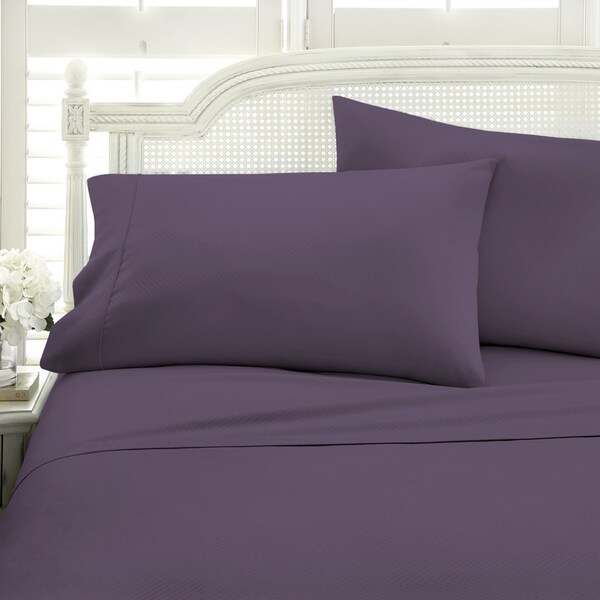 Premium Chevron Embossed 4 Piece Bed Sheet Set, Queen, Purple (Discontinued)