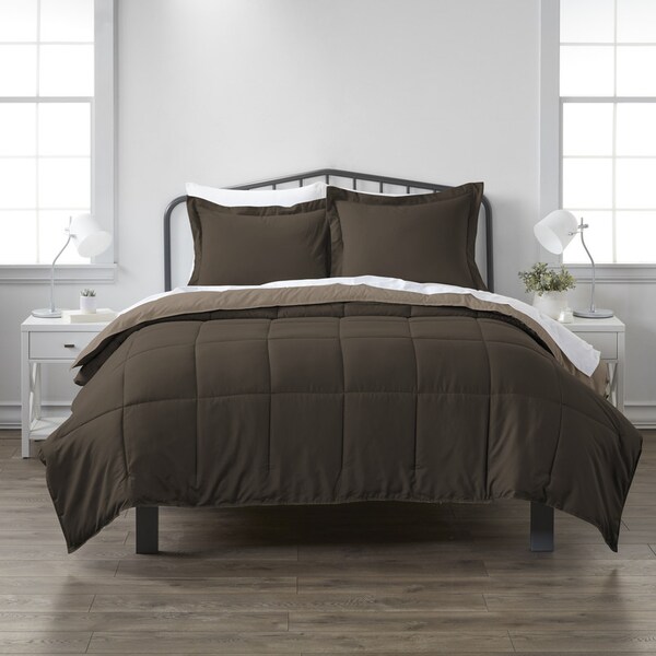Premium Down Alternative Reversible Comforter Set, King/Cal King, Taupe & Chocolate (Discontinued)