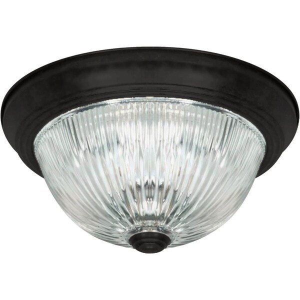 2-bulb flush mount ceiling light fixture. Features dimming capability. Matte black finish with a minimalist look. Uses (2) 40-watt Type A medium base LED (light emitting diode) light bulbs. 11 In. W. x 4 .75 In. H.