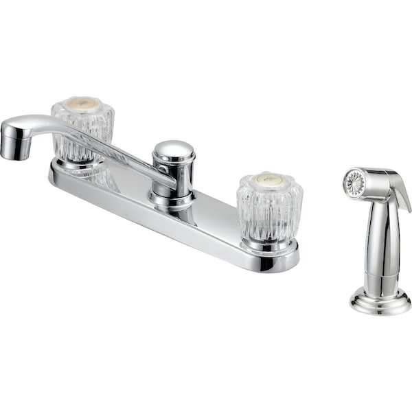 2-Handle Double Acrylic Knob Kitchen Faucet with Side Spray Chrome