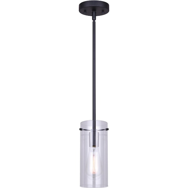1-bulb pendant ceiling light fixture. Features durable metal construction with a clear glass shade. Ideal task or accent lighting for any space in need of more illumination. Dimming capability. Uses (1) 100-watt Type A medium base incandescent light bulb. 4.75 In. W. x 16.875 In. to 58.875 In. H.