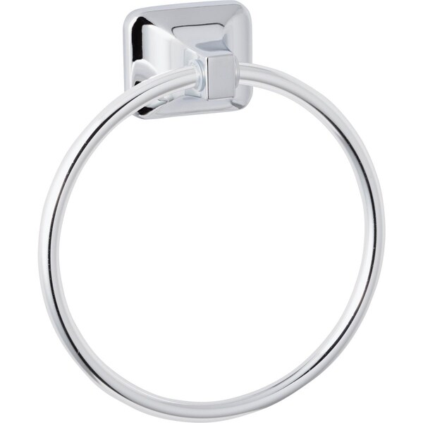 Vista series zinc die-cast wall mount towel ring with concealed mounting screws. Mounting hardware included. Ring outside diameter is 6.06 Dia. Easy installation. Boxed.