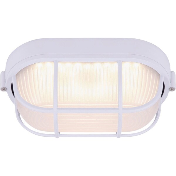 LED (light emitting diode) outdoor wall light fixture. Features durable metal construction and a frosted glass shade. Includes an 11.7-watt integrated LED which produces 819 lumens of light output. 4.5 In. W. x 4.125 In. H. x 8.25 In. D.