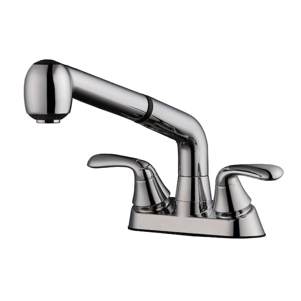 The pullout laundry faucet provides maximum flexibility for easy clean up and daily use. With dual spray function that includes both stream and spray options. Two ABS handles marked for hot and cold, complete with a modern, stylish Chrome finish.