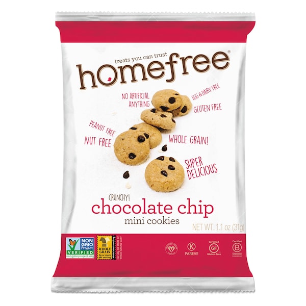HomefreeĀ® Gluten Free Chocolate Chip Mini Cookies, 1.1 oz Pack, 30/Carton