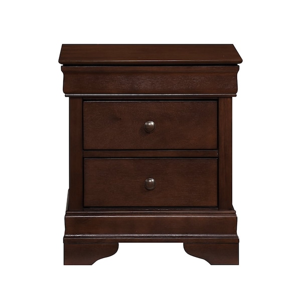 The ever-popular Louis Philippe style is achieved with a glamorous touch in the Abbeville Collection. The classic lines of the nightstand lend to the timeless look of this collection. Okume veneer is elegantly highlighted with a cherry finish that is further enhanced by the dark bronze tone of the knob hardware. The hidden drawer provides discrete storage space within the piece.