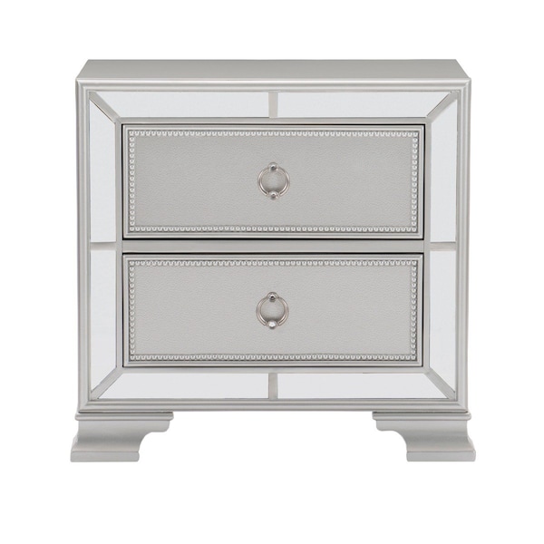 The reflection of your glamorous image is one of striking style and classic sophistication, all illuminated by the boldly designed Avondale Collection. Mirrored framing immediately draws your eye to the modern-traditional profile. Silver finished drop pull hardware centers each bead-molding adorned drawer front.