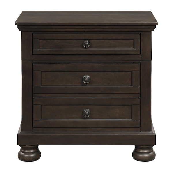 Casual transitional styling lends versatility to the placement of the Begonia Collection within a number of bedroom settings. The grayish brown finish lends distinctly to the execution of different looks from traditional to country casual, with knob hardware punctuating the look of the nightstand's framed drawer fronts. A Hidden drawer in the dresser provides discrete storage for your valuables. Bun feet support the nightstand lending additional decorative touch to the transitional design of the collection.