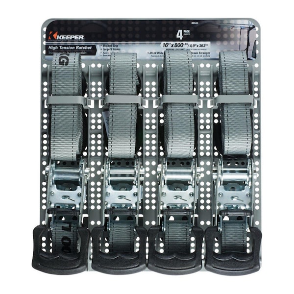 Tie Down Strap - Gray - 16 ft. L x 800 lbs, 4PK