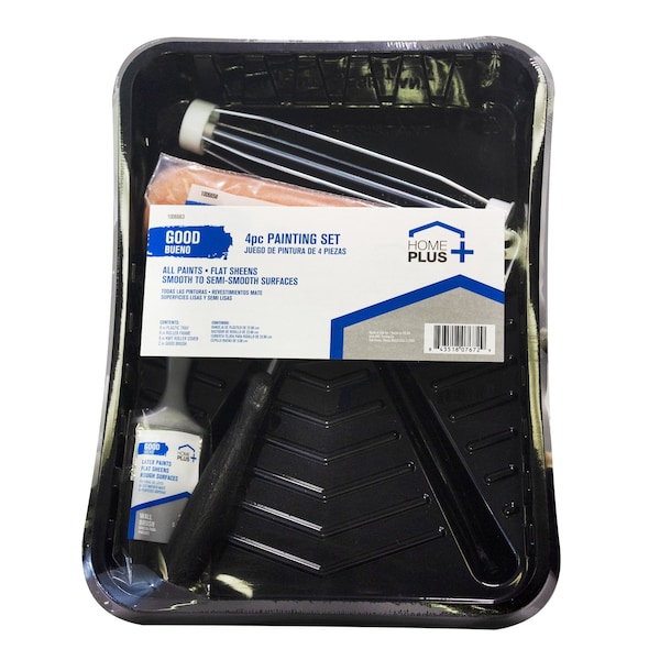 No matter what task you're taking on, having the right tools will help you get the job done right. This Basic 4-piece paint tray kit provides you with the basic tools to complete your project. This paint tray and roller kit includes a 9" plastic paint tray, 9" roller frame, 9"x3/8" knit roller cover and a 2" flat cut paint brush.