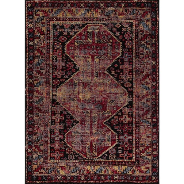 7 ft. 10 in. x 10 ft. 6 in. Diamond Antique BlackRed