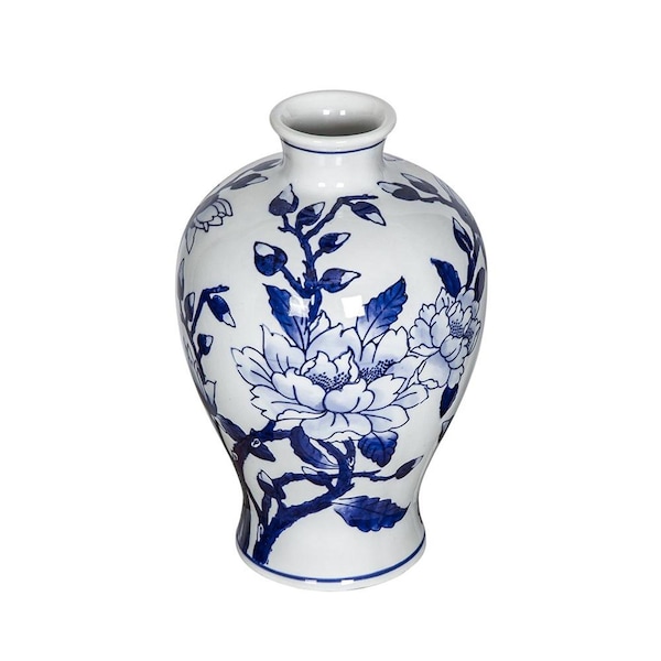 The 10-inch blue and white floral round porcelain table vase is a stunning addition to any home decor. This round table vase showcases exquisite hand-painted floral designs that bring charm and elegance to your space. Crafted from durable porcelain, it combines functionality with aesthetic appeal. Its traditional style makes it a versatile piece that complements various interior themes. Perfect for displaying fresh flowers or as a standalone decorative item, this vase enhances the beauty of your tabletop. Add a touch of sophistication to your living room or dining area with this exquisite piece that promises to catch the eye of every guest. 10.2-inch h x 6.5-inch w x 6.5-inch d.