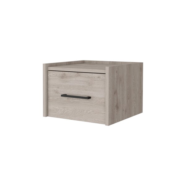 Give your room the look and feel of 5-star accommodations with this 10-inch gray wood one drawer floating nightstand. Maximize your floor space and adjust to the exact height you need, when you add this wall-mounted design to your space. Robust in design, the bed side table has been expertly crafted from manufactured wood. Includes a drawer to help keep your essentials close by and hidden. The unsung hero of the bedroom, this nightstand is perfect for keeping a glass of water, lamp, alarm clock, jewelry, and more, close by and easily accessible. 9.8-inch h x 13.8-inch w x 13.2-inch d.