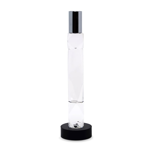 This 10-inch silver clear and black crystal tabletop taper candlestick is a great addition to your home decor. Dress up your home to impress every season with this fabulous candleholder. Features a modern and contemporary optical crystal layered geometric design in a chic clear and black color combination accented with silver at the top. 9.5-inch h x 2.5-inch w x 2.5-inch d.
