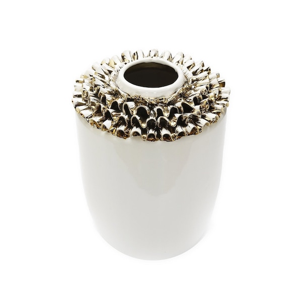 The 10-inch white round ceramic table vase with sculptural details is a stunning centerpiece that effortlessly elevates your home decor. Crafted from high-quality ceramic, this modern vase showcases a sleek round shape, making it versatile for various settings. The sculptural details add an artistic touch, transforming a simple vase into a statement piece. Ideal for displaying fresh flowers or decorative branches, it complements both contemporary and minimalist styles. Its elegant white finish seamlessly blends with any color palette, enhancing the overall aesthetic of your space. Perfect for use on tables, shelves, or mantels, this vase is a stylish addition to your home that brings a touch of sophistication and charm. 10-inch h x 8-inch w x 8-inch d.