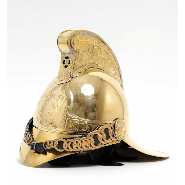 This is an exact reproduction of a brass Merriweather-pattern helmet from late Victorian England, used by the Fire Fighter Officers. It comes with very detailed brass dragon sculpture on the side and on top. Inside the helmet is a leather covering to provide comfort against the brass. Also comes with beautiful shiny brass chain. Its a great addition to any nautical collection. The item dimensions are: L: 12 inches, H: 10 inches, H: 11 inches.