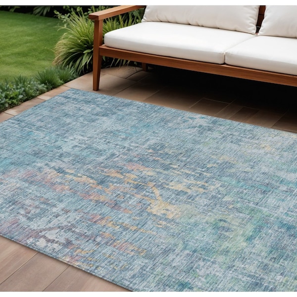 This 10-foot x 14-foot blue abstract washable indoor outdoor area rug, is a great way to add warmth to a room. This rectangle shaped rug features a abstract design that will work well both indoors or out. A classic shape marries with good looking design for your living room, hall, bedroom, porch, patio, or poolside. Ideal for outdoor spaces or high traffic areas with kids and pets, this rug is made from heavy duty polyester that is stain resistant to help repel water, dirt, and stains. Makes a great way to dress up your patio, porch, or poolside, but also works well as a durable and easy to maintain option in the kitchen, family room, or mudroom. 120-inch h x 168-inch w x 0.19-inch d.