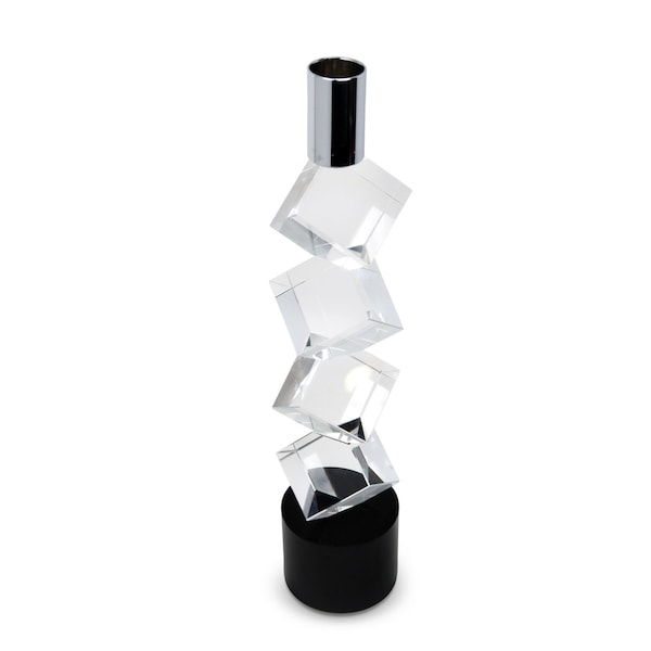 This 11-inch silver clear and black crystal tabletop taper candlestick is a great addition to your home decor and sure to complement your existing furniture. Dress up your home to impress every season with this fabulous candleholder. Candleholders are a decorative accent on their own. With our without candles. 11.25-inch h x 2.5-inch w x 2.5-inch d.