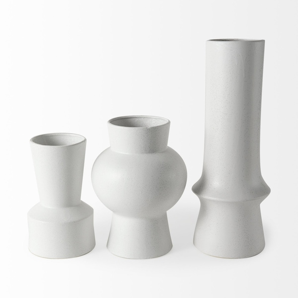 Elevate your space effortlessly with this sophisticated 11-inch white abstract cylinder ceramic table vase. The modern style of this table vase adds a sleek touch to any room, perfect for showcasing your favorite blooms or standing beautifully on its own. Its unique cylindrical shape brings a contemporary feel to your decor, while the crisp white color complements any color scheme with ease. Crafted from high-quality ceramic, this vase exudes durability and elegance. Place it on your dining table, mantel, or shelf to create a stunning focal point in your home. Add a touch of modern refinement to your interior with this exquisite ceramic vase. 11-inch h x 8-inch w x 8-inch d.