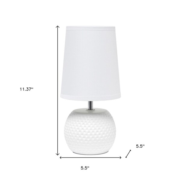 This 11-inch white ceramic round table lamp with white drum shade is a great way to add some brightness to any corner of your home. The base of this lamp is made of ceramic finished in a white tone. The white shade has a drum shape and is made from fabric. This standard table lamp is designed to provide general lighting to the area. High quality design makes this a great lamp for not only lighting, but accenting a room with style. Bring some lite and good vibes into your space with this updated and stylishly designed lamp. 11.37-inch h x 5.50-inch w x 5.50-inch d.