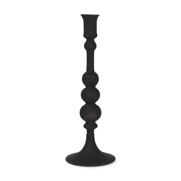 This 12-inch black glass tabletop taper candlestick is a great addition to your home decor and sure to complement your existing furniture. Handmade by skilled craftsmen and designed to add a glamorous glow to any event or table setting. Add an extra pop of personality to every corner of your home with this gorgeous candleholder candleholders are an attractive way to turn a simple candle into a piece of decor. 11.73-inch h x 3.98-inch w x 3.98-inch d.