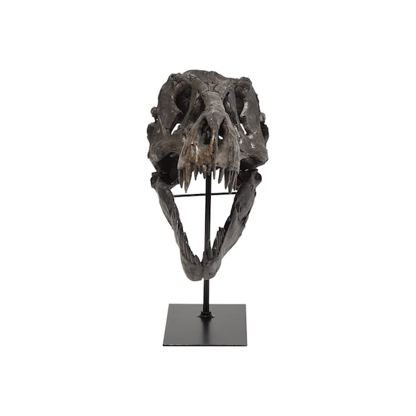 This 12-inch brown fabric dinosaur tabletop sculpture, crafted with high-grade fabric, brings a touch of nature to your living room decor. The contemporary style of this machine-made piece makes it a perfect addition for those seeking a stylish aesthetic. 12-inch h x 10-inch w x 6-inch d.