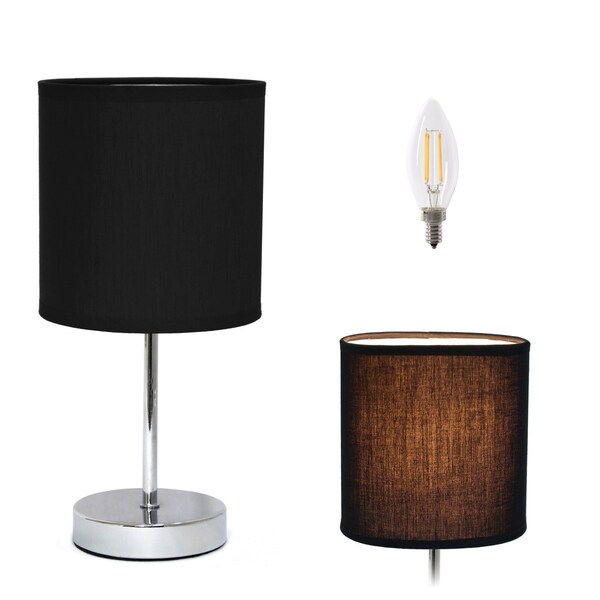 Embrace the good life with this hard working and stylish 12-inch silver metal table lamp led with black drum shade. A gorgeous silver metal base brings just the right amount of pizzazz to this fabulous lamp. The black drum fabric shade is a great compliment to this lamp. This standard table lamp is designed to provide general lighting to the area. Use this lamp anywhere and elevate the look of the whole space. The perfect lamp to create just the right natural and soothing light in your space. 11.81-inch h x 5.51-inch w x 5.51-inch d.