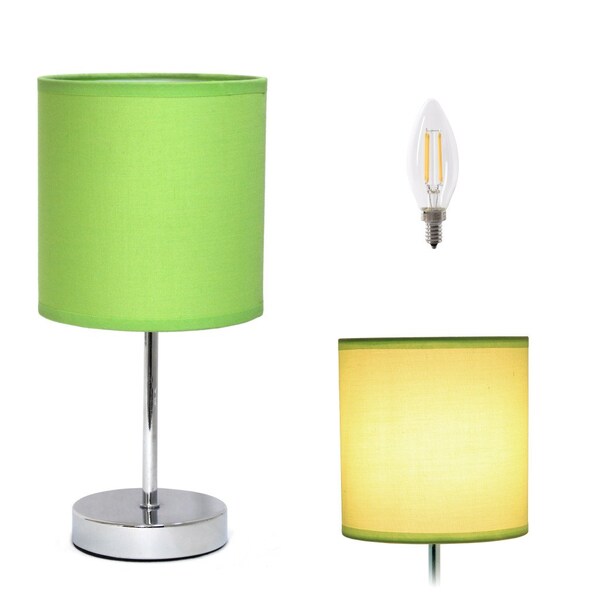 Bring of level of elegance and freshness to your space with this high quality 12-inch silver metal table lamp led with green drum shade. The base of this lamp is made of metal finished in a silver tone. Includes a green fabric, drum shaped shade, making this a fashionable piece that will complement most any interior. This standard table lamp is designed to provide general lighting to the area. The light that this lamp throws is soft and warm to elevate the look of most any space in your home. The perfect lamp to create just the right natural and soothing light in your space. 11.81-inch h x 5.51-inch w x 5.51-inch d.