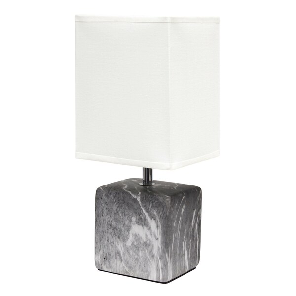This 12-inch white ceramic square table lamp with white shade is a great way to add some brightness to any corner of your home. The base of this lamp is made of white ceramic. Includes a white fabric, rectangular shaped shade, making this a fashionable piece that will complement most any interior. This standard table lamp is designed to provide general lighting to the area. Use this lamp anywhere and elevate the look of the whole space. Bring some lite and good vibes into your space with this updated and stylishly designed lamp. 11.81-inch h x 4.33-inch w x 5.12-inch d.