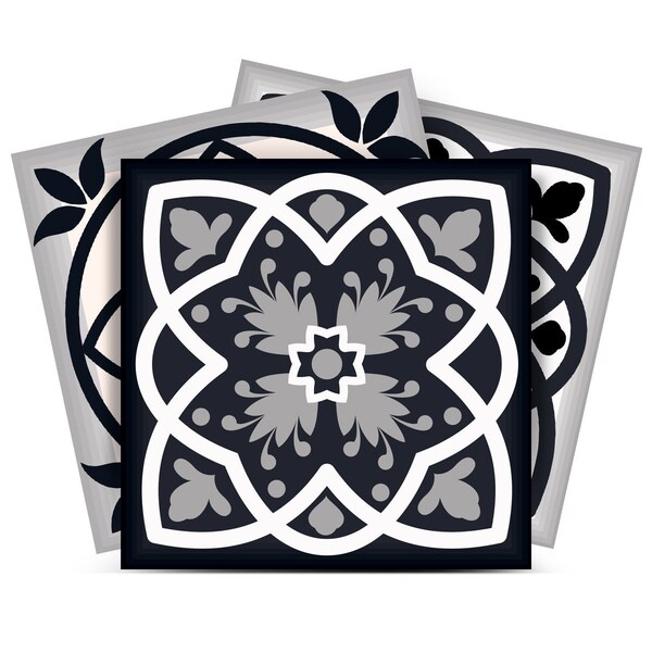 The possibilities are endless with these 12" x 12" Black White and Tan Peel and Stick Removable Tiles stickers. These fabulous peel and stick tiles will add lots of color, sophisticated flair, and fun design to your kitchen backsplash, fireplace mantel, stair treads, half wall, bathroom or nook. These 12" square tile stickers in multiple bright fun colors and designs are an easy, no mess solution to complete a personalized and colorful room makeover. Easy to apply on any clean dry flat surface, and easy to remove. Multi use and multi-room appeal make this design option is perfect for renters, landlords, college students and homeowners alike. Peel and stick tile decals make it easy to turn your space into a home. Removable without damage to surfaces. One kit contains 24 stickers. Kit includes multiple styles that can be arranged in any patterning you choose.