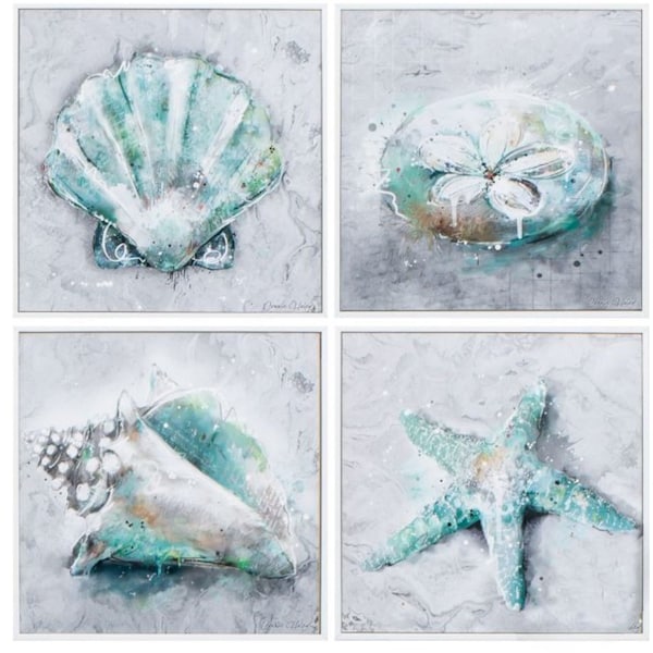 12" X 12" Matte White Frame Sealife Set Of 4, 4PK