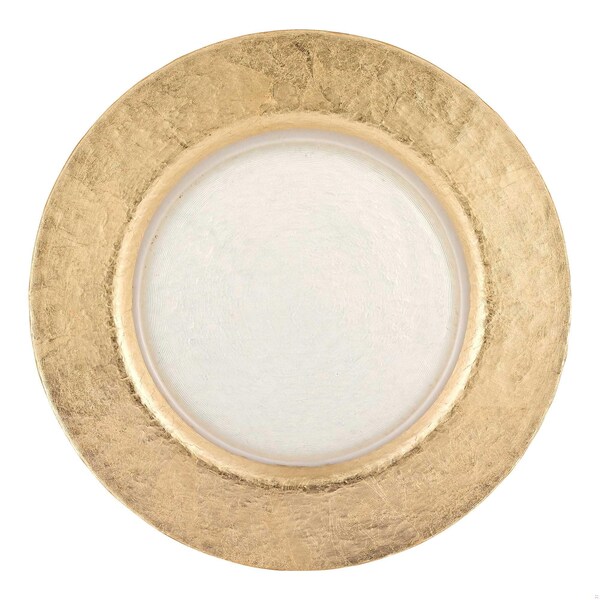 13 in. Hand Crafted Gold Glass Authentic Leaf Round Charger Plate (Discontinued)