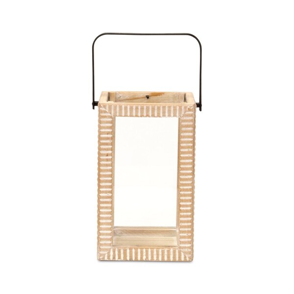 This 13-inch natural distressed geometric solid wood tabletop lantern candle holder adds flair, function, and visual interest to any home or special occasion. Handmade by skilled craftsmen and designed to add a glamorous glow to any event or table setting. This candleholder is the perfect illuminating design to accent your space in style. Candleholders are a decorative accent on their own. With our without candles. 13.25-inch h x 5.75-inch w x 6.50-inch d.