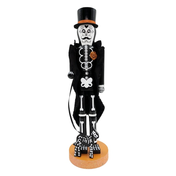 Set a festive fall mood with this 14-inch black and white solid wood Halloween ghost nutcracker. A striking piece that showcases skilled craftsmanship, each detail is hand finished to create a unique character. This creepy nutcracker skeleton ghost embodies the spirit of Halloween, making it an engaging focal point in your home decor. Blending tradition with artistic flair, it appeals to those who appreciate both nutcrackers and the spooky side of Halloween style. 14.00-inch h x 5.00-inch w x 5.00-inch d.